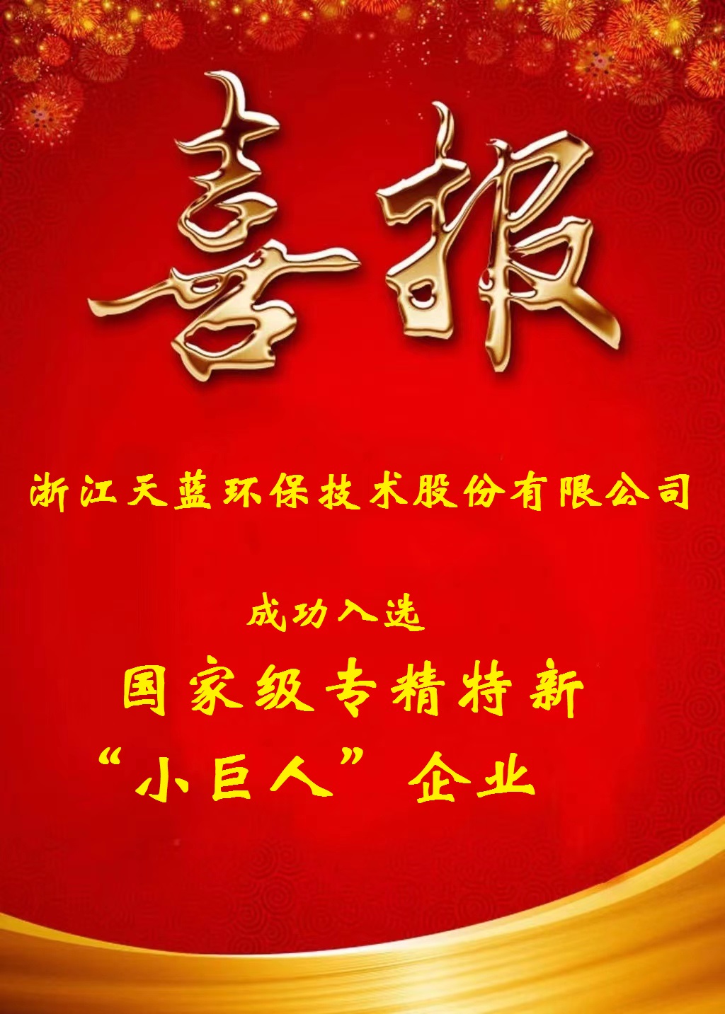 近日,浙江省經(jīng)濟(jì)和信息化廳發(fā)布了《關(guān)于浙江省第四批專(zhuān)精特新“小巨人”企業(yè)和第一批專(zhuān)精特新“小巨人”復(fù)核通過(guò)企業(yè)名單的公示》,天藍(lán)環(huán)保憑借在大氣污染治理領(lǐng)域的技術(shù)創(chuàng)新綜合實(shí)力和市場(chǎng)占有率,成功入選國(guó)家級(jí)專(zhuān)精特新“小巨人”企業(yè)名單。